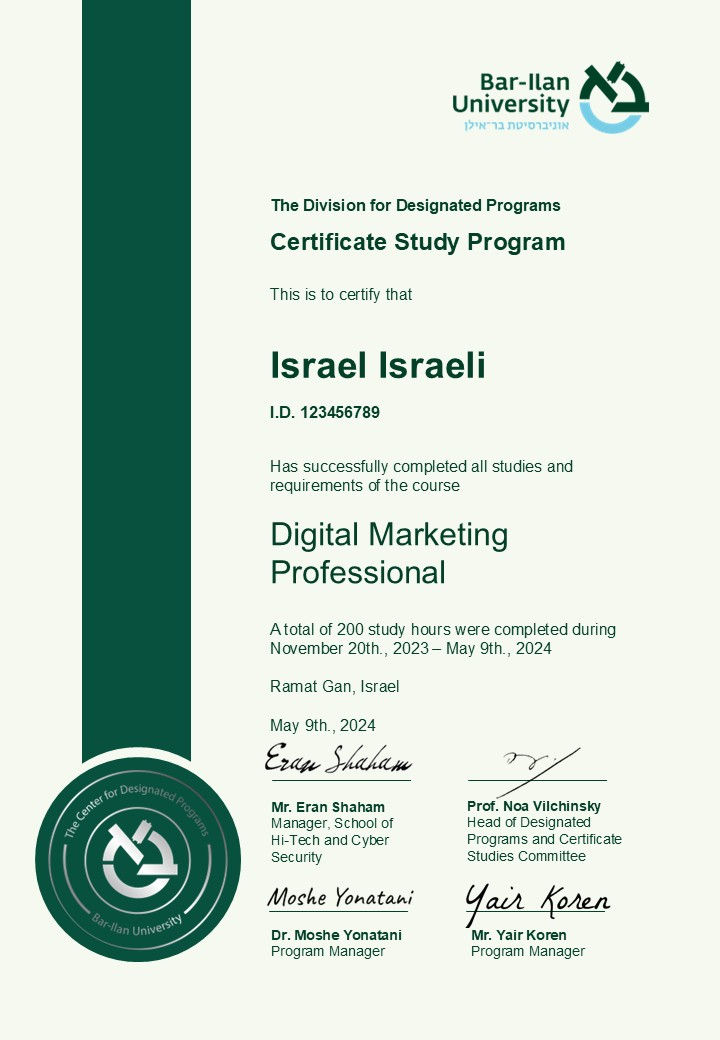 בית הספר להייטק וסייבר מעניק לבוגרים תעודת Certified Digital Marketing Professional מטעם אוניברסיטת בר-אילן.